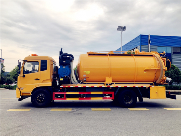 吸污部分:9方污罐,罐體8mmQ235優(yōu)質(zhì)碳鋼,配濰柴375(420)副發(fā)動機帶淄博SK-30水循環(huán)泵,還可以選配羅茨泵。10米吸污管一根,進(jìn)氣管加過濾網(wǎng),防溢閥加高,后蓋卡扣鎖緊,前視污亮管,后尾部加裝3個力拓牌100mm的球閥吸污口,600mm排污口液壓開啟,罐體帶舉升功能。